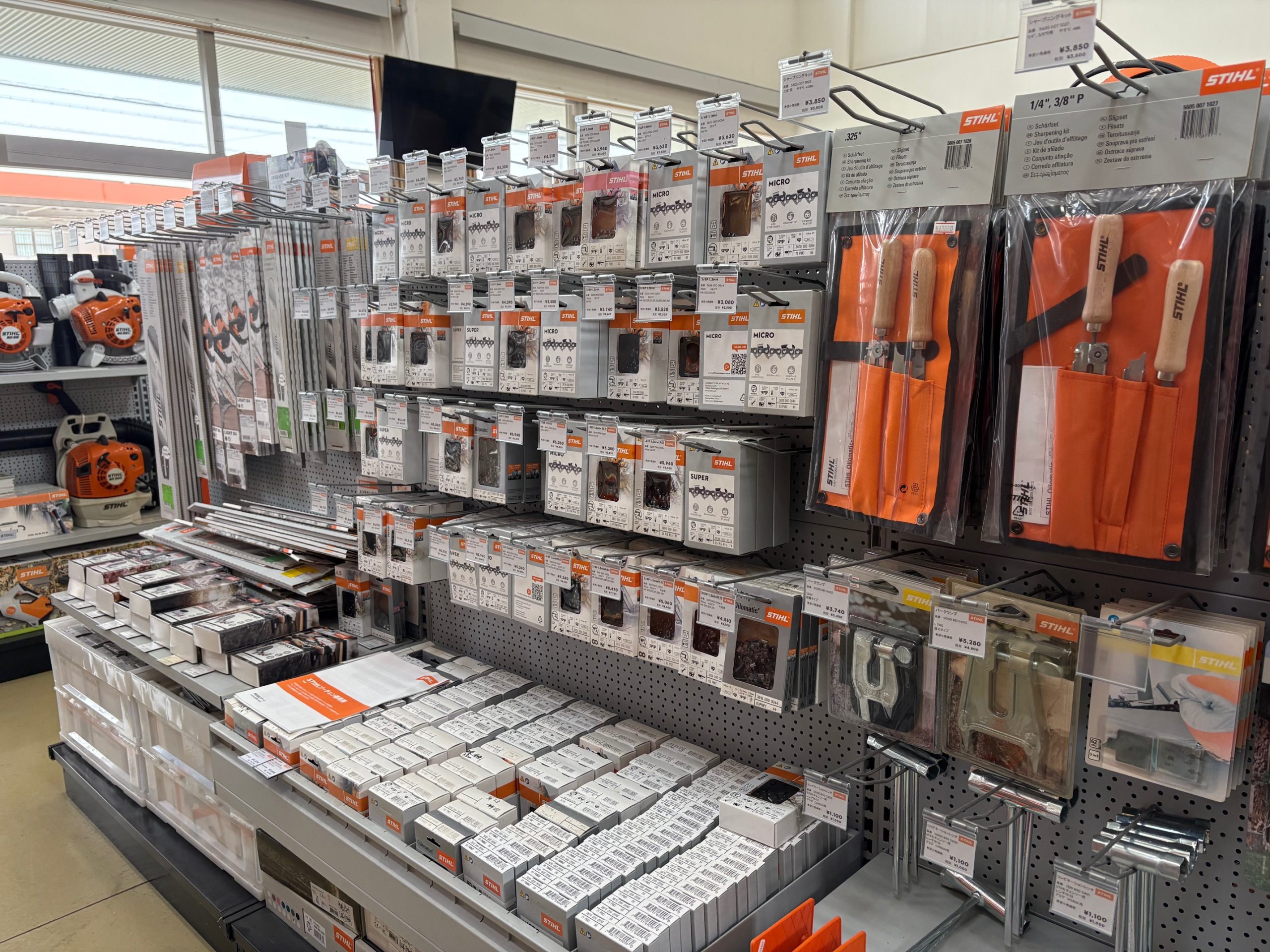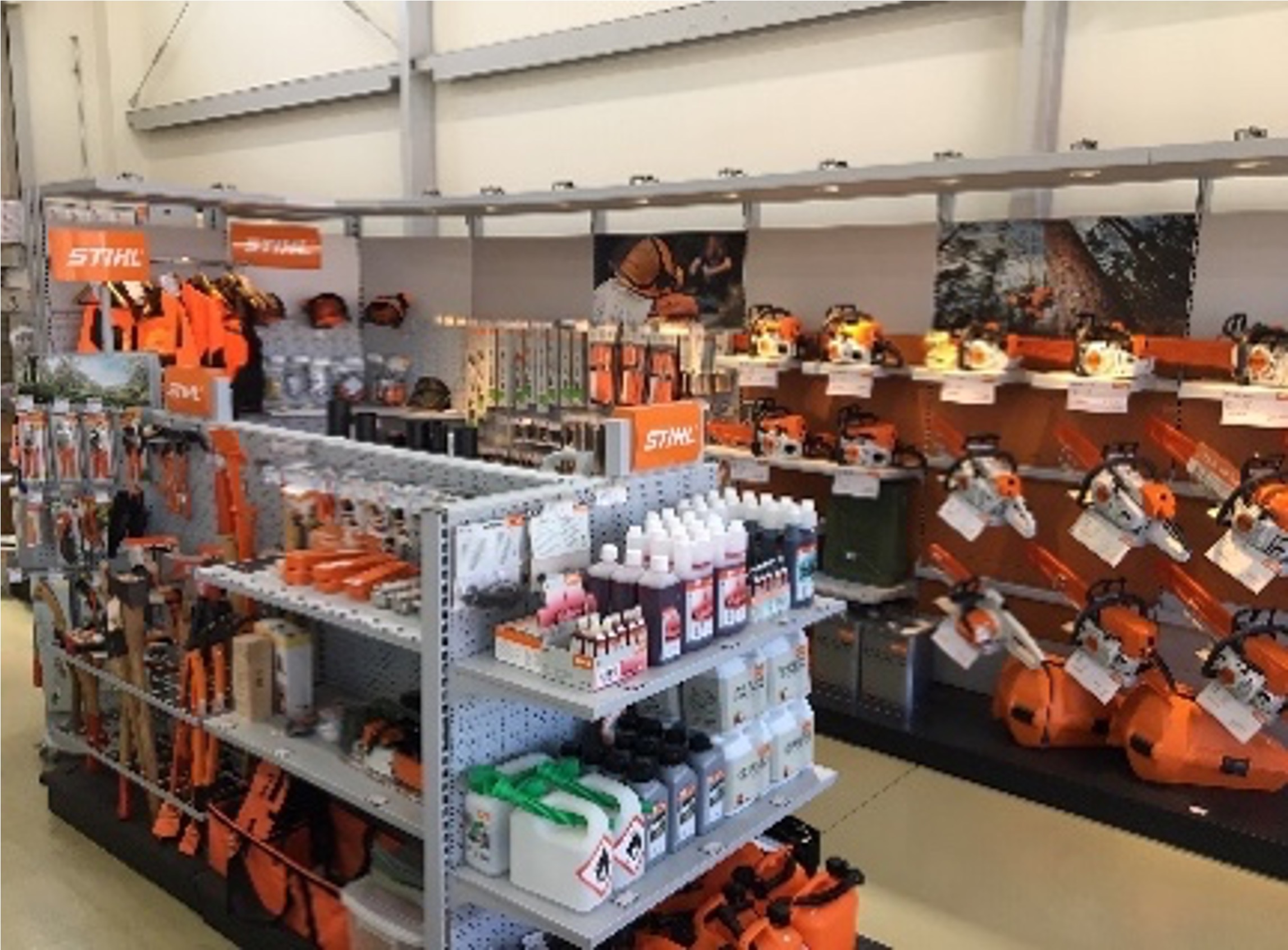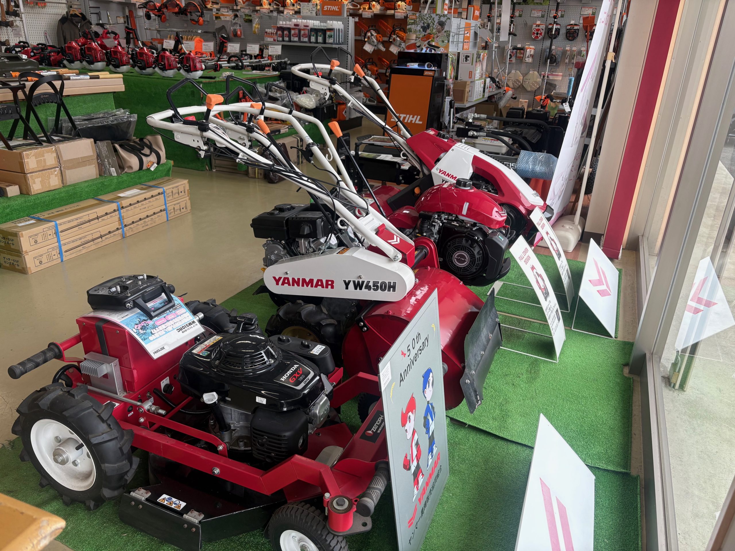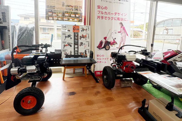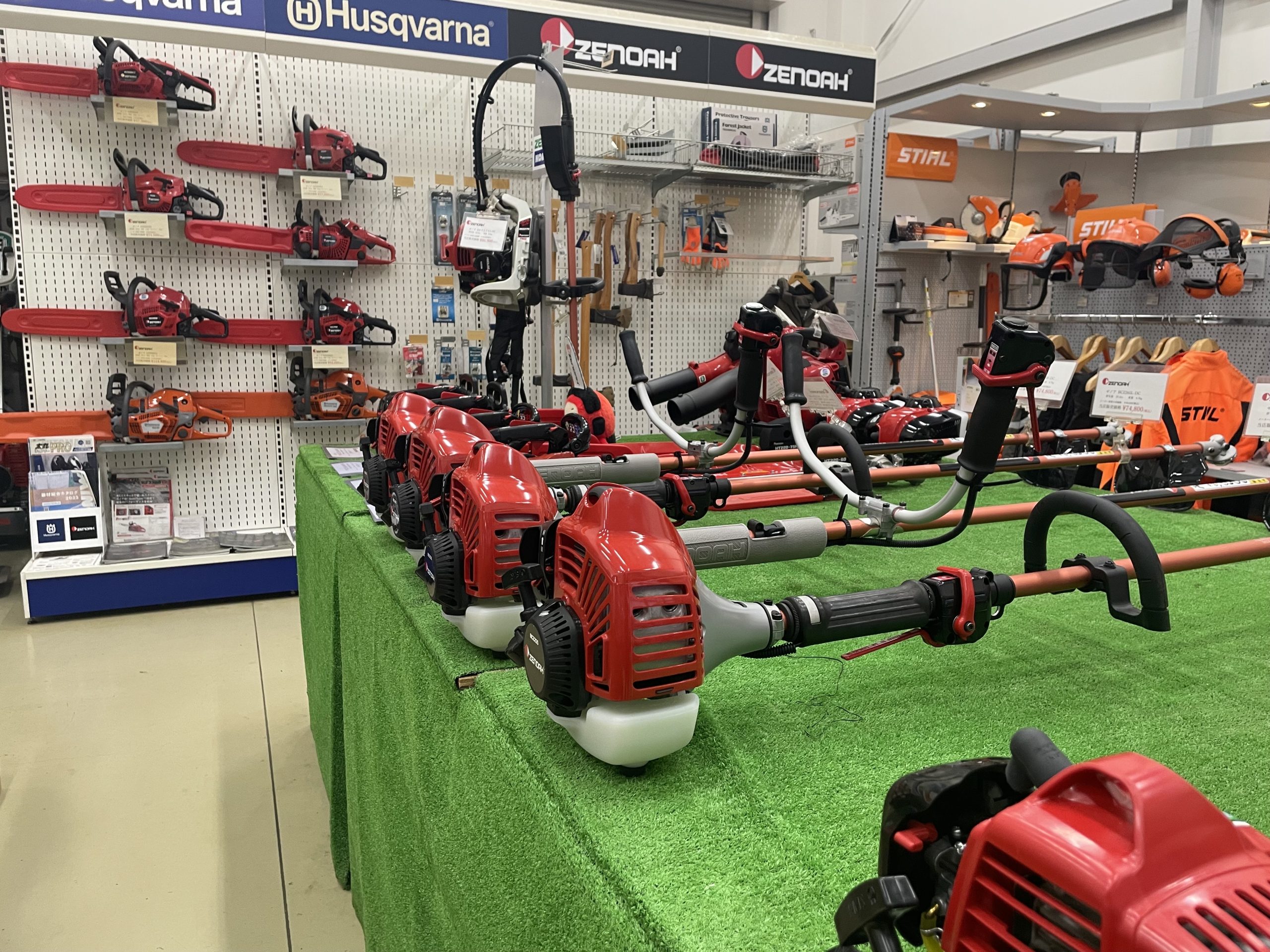 STIHLをはじめ、ハスクバーナー、ゼノア製品を多数展示。他メーカーも取り扱いしております。