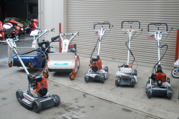 畔草刈り機、斜面草刈機、背負い式草刈機、刈払機を多数展示しております。
